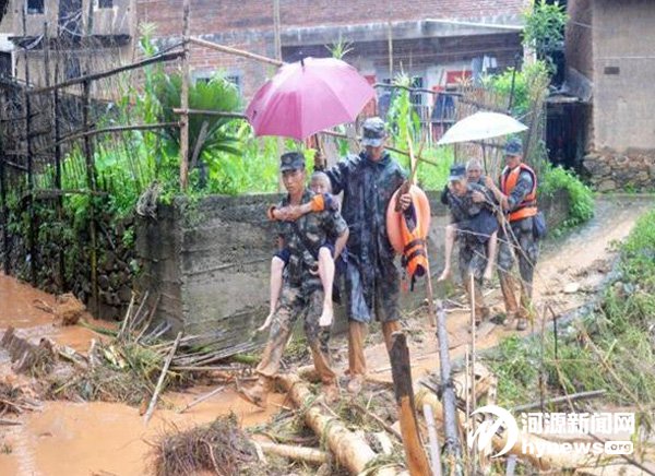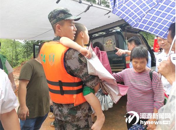 災情發生后,廣大官兵連夜趕到米貝村積極救援,發揮了中流砥柱的重要作用,成為人民利益的捍衛者。記者看到,身穿綠軍裝的官兵正通過剛剛打通的泥濘山路,把交通阻斷的米貝村村民轉移出來。據了解,這些官兵于13日凌晨趕到米貝村,救援部隊官兵黃燕文介紹,凌晨接到命令后,他們立即組織了120個人與20多艘救援艇前來米貝村。他也表示,由于龍川縣委、縣政府與鎮村救援指揮及時、措施妥當,通過共同努力,到當天下午已經救出了90多名村民。