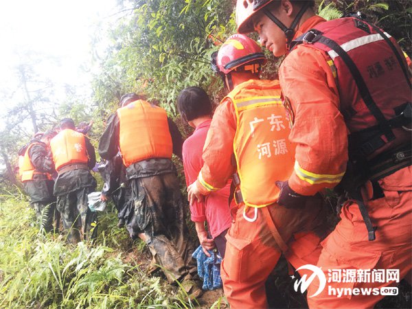就這樣摸索爬行著,將近30分鐘后,救援人員終于抵達石陂村。隨后,連平消防中隊和公安等救援人員開始挨家挨戶地搜救工作,隨后將被困人員集中在山路口,并分兩批通過山路進行疏散。疏散時,救援人員3米一崗,先護送45名行動方便的被困村民。隨后,第二批年長和行動不便的17名被困人員,包括1名嬰兒,則由連平消防、公安及稍后趕到的武警救援人員分三人一組用背負的方式進行撤離。