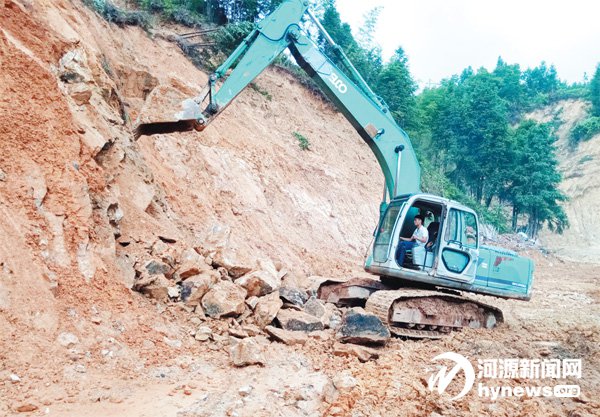 昨日,經過緊張作業,龍川縣S238線貝嶺鎮米貝村龍樹墩臨時便道擴寬至兩車道。吳奕鎮 攝