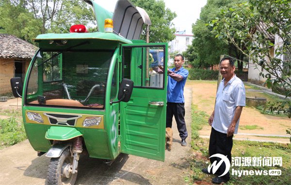 實現垃圾上門收集,大坪村村民朱建亮(右)很是開心。