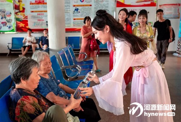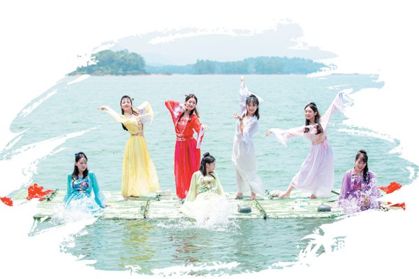 萬綠湖景區工作人員穿上傳統服飾,向廣大游客展示七夕文化。