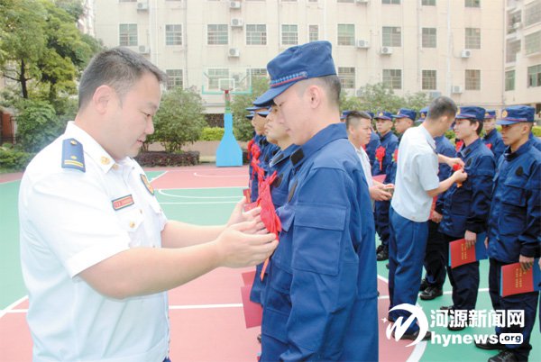 新招錄消防員在家鄉(xiāng)親人的見證下,接受《消防員入職通知書》,戴上大紅花,踏上了紅門生涯的新征程。近日,河源市2019年首次招錄消防員歡送儀式在市消防支隊(duì)機(jī)關(guān)舉行,來自各縣(區(qū))的27名消防員換上“火焰藍(lán)”,精神抖擻,整裝待發(fā)。