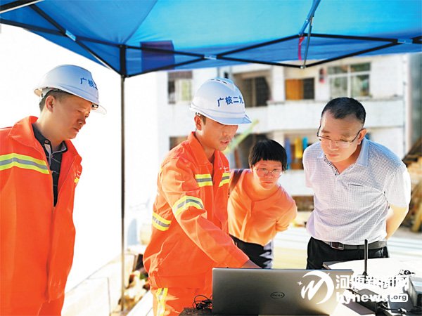 技術(shù)人員現(xiàn)場(chǎng)辦公監(jiān)測(cè)數(shù)據(jù)。