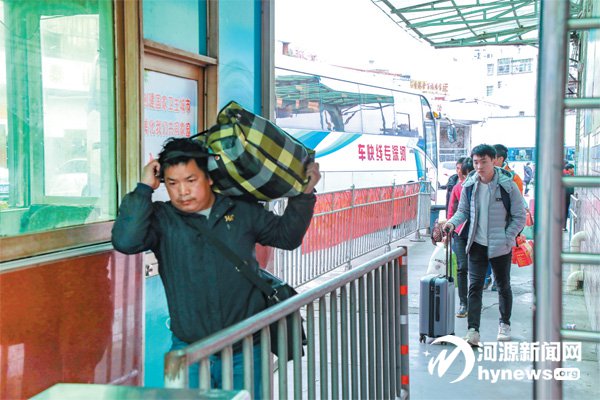 一元復始,萬象更新。春節長假 已經結束,帶著親人的牽掛與祝福,我 市外來務工人員再次拖著行李箱,返 崗上班繼續追夢,開始又一年忙碌而 充實的工作生活。11 日,記者在市汽 車站、河源火車站等地跟隨返崗人流, 走近返崗職工,聆聽他們路途上的故 事以及他們的期盼。