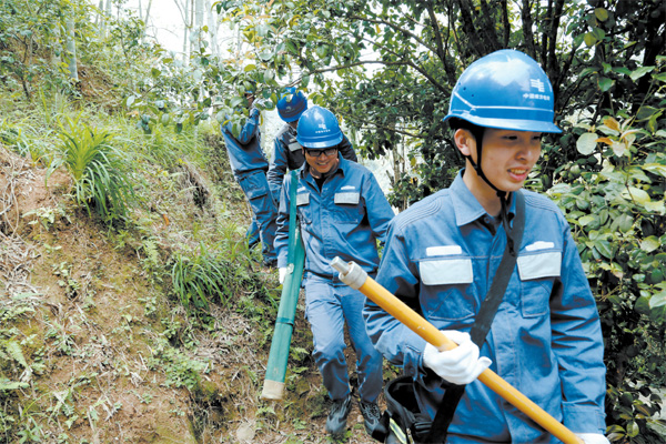 為了改變細(xì)坳鎮(zhèn)的供電現(xiàn)狀,張超主動請纓,放棄休息,轉(zhuǎn)變工作模式,一方面積極學(xué)習(xí),考取了高級工、高級作業(yè)員等資格,努力實現(xiàn)帶電接火、帶電更換殘舊設(shè)備等方式,在不停電的情況下完成工作任務(wù);另一方面,化過去“人等故障”的落后工作模式為“人找隱患”,主動出擊,有計劃、有步驟、有針對性地開展10kV中壓線路的巡視工作、及時消除配網(wǎng)線路存在的安全隱患,同時對轄區(qū)內(nèi)線路、開關(guān)及變壓器進(jìn)行全面摸底,進(jìn)一步完善配網(wǎng)基礎(chǔ)數(shù)據(jù)。經(jīng)過排查發(fā)現(xiàn)10多處中高壓線路隱患點,其中4-5個屬于緊急隱患點,低壓線路隱患點共33個。還針對配網(wǎng)線路穿越竹林、臨近住宅或?qū)Φ鼐嚯x不足等問題,逐一制定解決措施,逐步縮減線路故障發(fā)生率,提高供電可靠性,僅2017年就清理樹障約4.5萬棵。