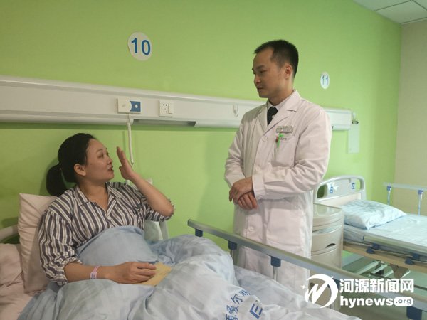 醫(yī)生在了解朱雪鳳的術(shù)后情況。
