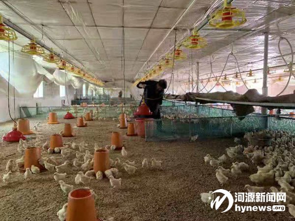 檢查雞的生長情況,調節風機、水簾,清洗飲水器……一大早,貧困戶黃志輝穿著工作服在富樂村裕民養殖場的雞舍內專心致志地打理著。