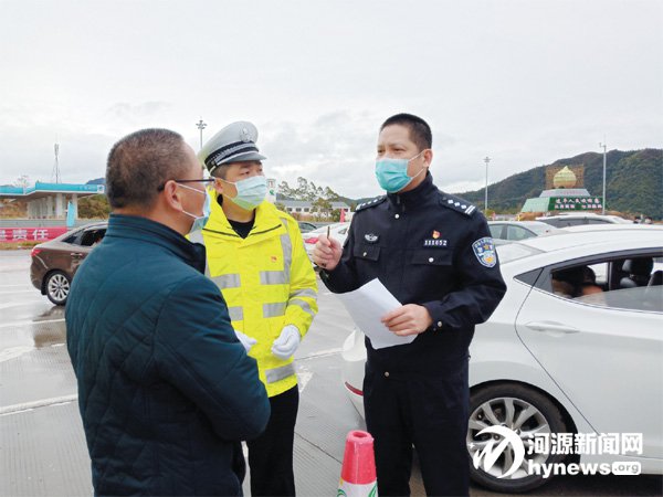 7日上午,在大廣高速連平服務(wù)區(qū)省界聯(lián)合檢疫檢查站(以下簡稱聯(lián)合檢疫站),可以看到這樣的場景:身穿醫(yī)護大褂或警服、佩戴口罩的執(zhí)勤人員分工明確,有人手持紅外測溫槍逐車逐人測量體溫,有人負責維持車輛秩序,有人負責登記車輛和人員信息。雖然正處高峰期的高速出入口有數(shù)十輛車在排隊等候檢查,但整個現(xiàn)場緊張而有序,大家各司其職、有條不紊。該站點負責人——連平縣副縣長、公安局局長張斌松腳步匆忙,來回巡查協(xié)調(diào)各個崗位工作,確保“保防疫、保暢通”工作目標的順利實現(xiàn)。
