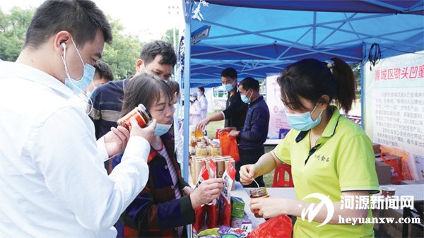 據悉,源城區自實施鄉村振興戰略以來,在源城區人民的配合支持下,以習近平新時代中國特色社會主義思想為指導,堅定不移走中國特色社會主義鄉村振興戰略,圍繞“產業興旺、生態宜居、鄉風文明、治理有效、生活富裕”總要求,以“1+6+N”的工作思路為主要抓手,取得了一定的成就。在當天活動現場,不僅有蜂蜜、魔芋調味品、茶葉等源城區本地的消費扶貧產品展銷,還有來自全國各地的美食品嘗,吸引了不少市民群眾前來參加活動,品嘗特色小食,現場人聲鼎沸、熱鬧非凡。