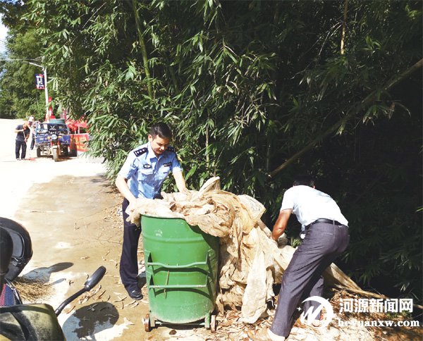 林東煥和村民一起清潔鄉村,打掃衛生。