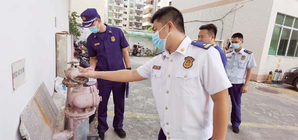 周理(前)帶隊開展消防安全重點單位“六熟悉”工作。