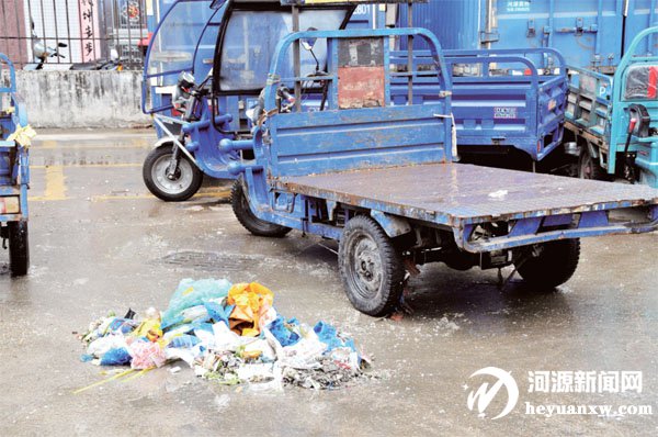 在老城中心市場周邊,記者看到,有一些菜葉、紙巾、垃圾袋、煙頭、飲料瓶等被隨意丟在地上,部分垃圾被丟棄在垃圾桶旁邊。