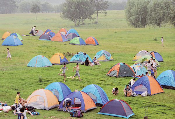 隨著天氣逐漸升溫,溫榆河公園、大運河森林公園、通州城市綠心公園等成為北京熱門露營地。其中,位于朝陽、順義和昌平交界處的溫榆河公園,是北京城的最大“綠肺”。今年清明小長假期間,公園里的連翹、碧桃、山杏、玉蘭、丁香等陸續綻放,3萬平方米的帳篷露營地也正式開放。不少北京市民攜家帶口支開帳篷,愜意地享受著難得的假期。除了郊野公園,京郊部分地區也看準商機推出主打露營旅游的營地,同樣人氣爆棚。
