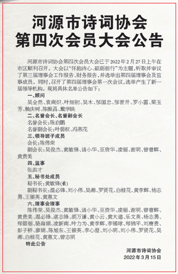 傳接吟旗向遠行——河源市詩詞協會第四次會員大會專題