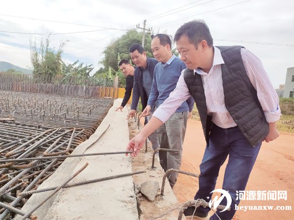 溫鋼堅(jiān)(右二)跟深圳駐中壩鎮(zhèn)幫鎮(zhèn)扶村工作隊(duì)一起了解中壩過(guò)境路建設(shè)情況。
