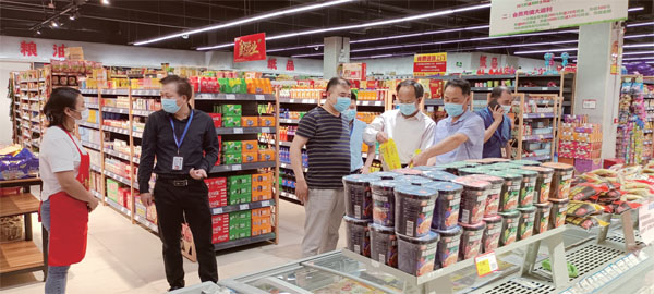 市市場(chǎng)監(jiān)管局工作人員在超市內(nèi)開(kāi)展執(zhí)法檢查。