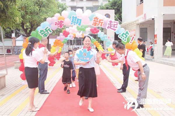 在源城區康寧路小學的校門口,記者現場看到,寓意吉祥的康寧路小學吉祥物早早就在此等候新同學的到來。家長們帶著孩子們,紛紛在此打卡,拍照留念,新學期新希望,家長們都期待孩子茁壯成長。為學之初,禮儀之始。新生萌娃踏上紅毯,走過象征成長和超越的入學門,成為一名光榮的小學生,開啟人生新篇章。跨過入學門,孩子們美好夢想在此刻啟航。