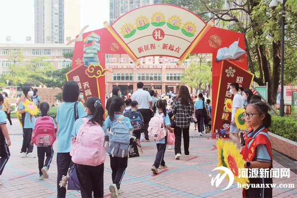 本報訊 記者 鄧宇珊 曹志成 程鵬 昨日,河源學子們告別了豐富多彩的暑假,帶著對新學期的興奮與期待回到了校園。為了讓學生以飽滿的精神狀態迎接新學期,全市各中小學校根據實際,設計了不少儀式感滿滿的環節,讓學生在形式多樣的“開學第一課”中開啟新學期。