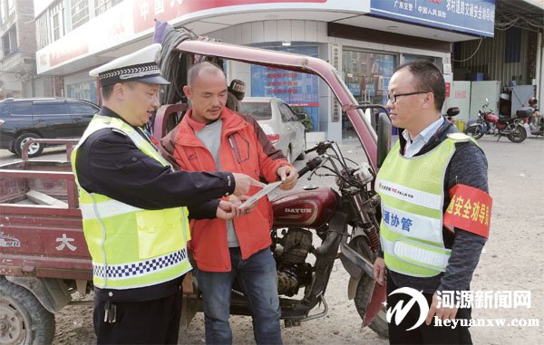 黃偉華(左一)給駕駛員普及交通安全知識。