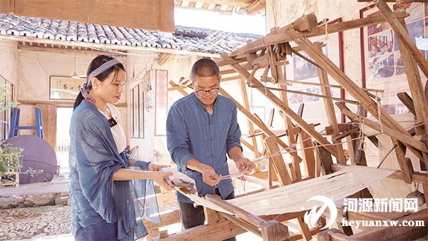 “墩頭藍是我們廣東客家地區僅剩的一門既有織又有染的手工藝,也是中國優秀傳統手工印染紡織繡的一個分支,興盛于明清至20世紀90年代末。由于時代變遷,現代科學技術的進步,墩頭藍工藝逐漸衰落。”墩頭藍紡織技藝傳承人曾春雷一邊介紹一邊向記者展示當前已被閑置在墩頭藍染織場館內的織布機。1979年,曾春雷出生在墩頭村,自兒時起便開始接觸墩頭藍紡織技藝。“我從小便耳濡目染,村里的老工匠們擺攤染布的場景仍歷歷在目。在外出求學的過程中,不僅提升了我的思想境界,也增強了我對民族傳統文化的認識,于是在專家學者的建議下,我便決心回到家鄉,決定要把墩頭藍傳統技藝傳遞出去,讓更多的人來了解河源、了解這項非遺技藝。”曾春雷說。