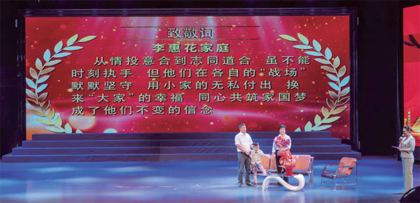 在河源市文明家庭徐凱家庭中,丈夫徐凱履行著新時代消防人“大應急、主力軍”的職責,而妻子黃鳳瑾則用行動譜寫動人的“擁軍”之歌,夫妻倆小家有大愛,攜手共前行。2019年6月12日,和平縣遭遇洪災,徐凱積極投身熱水鎮救災,奮戰在抗洪搶險第一線。黃鳳瑾則用柔弱的身軀扛起家庭的重擔,她在孝敬、愛護家中4位老人的同時,還為兒子言傳身教樹立榜樣,教導孩子要像爸爸一樣做一個對社會有用的人。