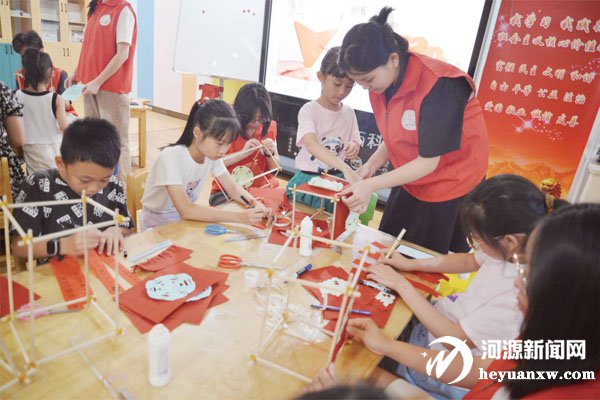 近日,河源市社會科學(xué)界聯(lián)合會、廣東技術(shù)師范大學(xué)“三下鄉(xiāng)”隊伍“尋燈拾遺隊”、廣東技術(shù)師范大學(xué)外國語學(xué)院聯(lián)合在市圖書館少兒天地活動區(qū)開展了以“一盞忠信花燈,點亮繁星仲夏夜”為主題的非遺文化小課堂。