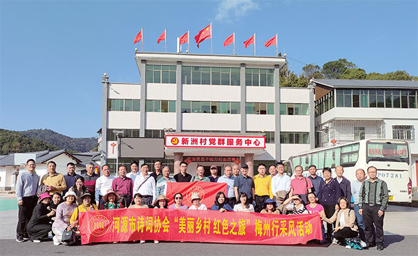 11月25-26日,河源市詩詞協會一行46人前往平遠縣、興寧市進行了為期2天的“美麗鄉村紅色之旅”梅州行采風活動,受到平遠縣文聯主席韓德志、興寧市文聯主席廖潤源等的熱情接洽。市詩詞協會會長陳偉榮,執行會長巫資華,副會長兼秘書長黃敏鋒,副會長諸小華、凌麗、謝明、曾善輝、黃貴美等班子成員參加了本次活動。