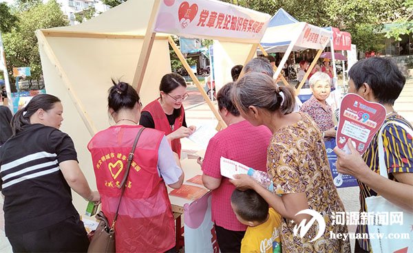 在“美麗庭院·綠美源城”攤位前,黨員志愿者們聚焦家庭家教家風建設、“庭院經濟”、志愿服務等領域,向群眾介紹“美麗庭院”建設活動,呼吁群眾共同參與續寫“美麗庭院”建設的“后半篇文章”,以庭院“小美”助力鄉村“大美”。