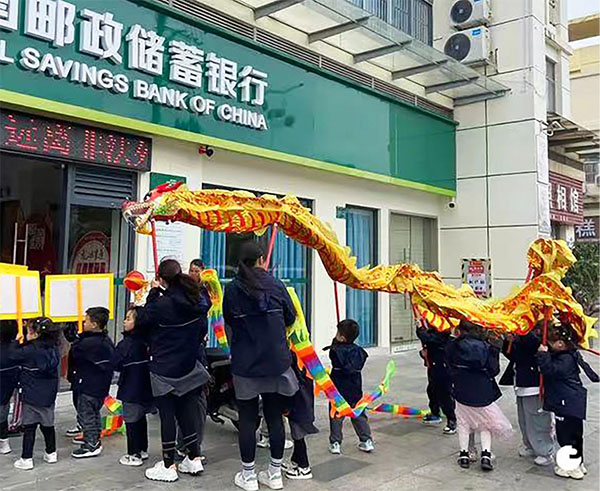 一起游戲,一同歡樂。為增加活動的趣味性,郵儲銀行河源市城區(qū)支行準備了“童真童趣,龍行龘龘”舞龍小游戲,特邀約周邊幼兒園小朋友參加,讓小朋友們通過民間傳統(tǒng)舞龍游戲,增強對民俗文化的認識,感受中華傳統(tǒng)的魅力。小朋友們對舞龍游戲產生濃厚的興趣,紛紛參與,體驗舞龍小游戲的快樂。