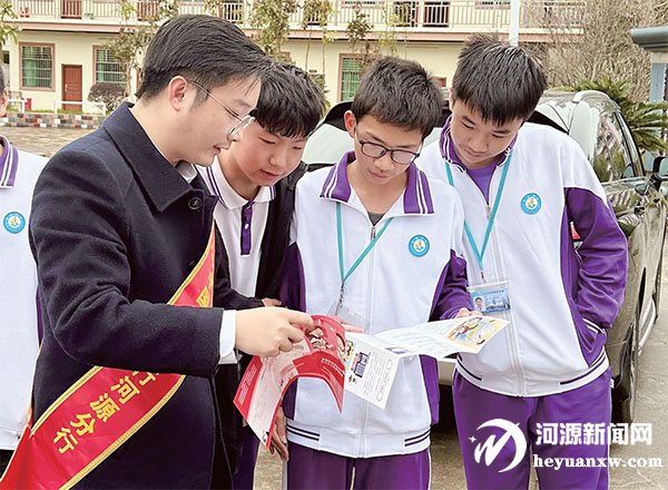 工行河源分行員工為學(xué)生普及金融知識(shí)。
