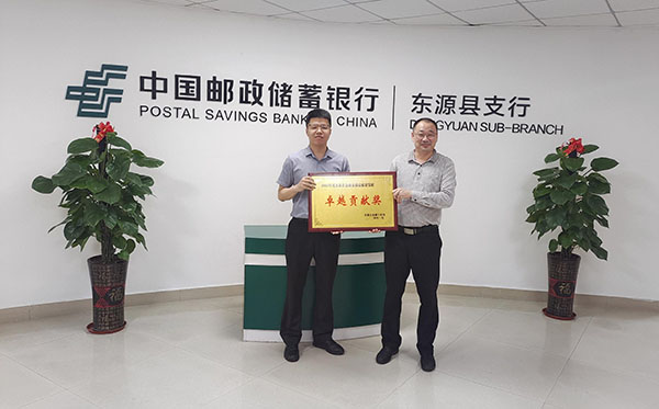 郵儲銀行東源縣支行榮獲東源縣金融“卓越貢獻獎”