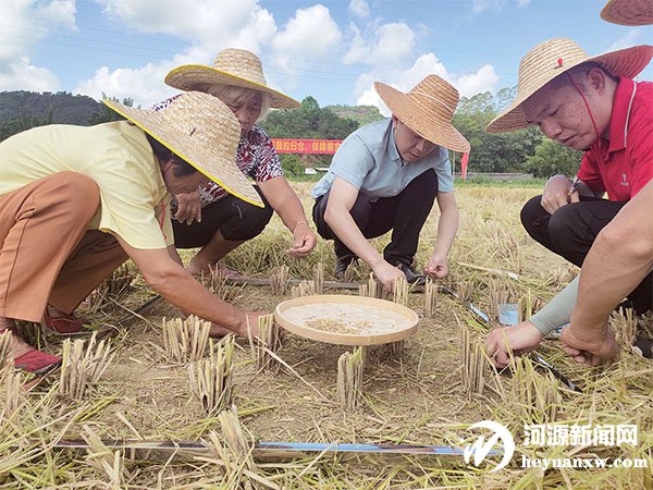 工作人員正在進行機收損失率監測。