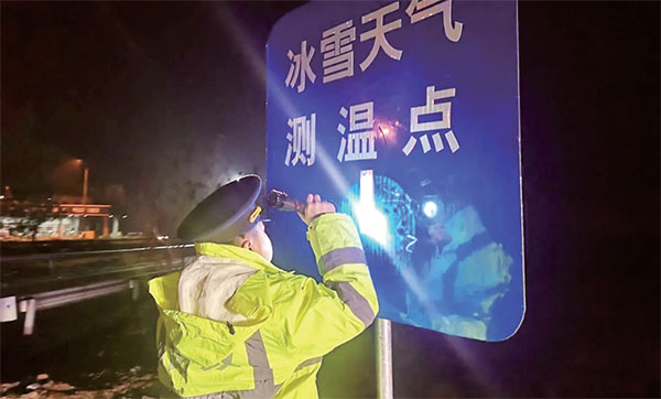 “和平路政中隊報告:往江西方向和平至粵贛路段車流量少,現場氣溫2℃,未出現結冰,出省道路通行順暢!”大年初一凌晨1時,正在進行路面巡查的當班路政員曹正好,第一時間向粵贛高速監控中心上報了管轄路面的最新情況。對比春節前的返鄉高峰,此時的路面顯得有些冷清,不復往日的車水馬龍,但是按照道路保安全保暢通的相關要求,曹正好和同事們依舊如往常一樣認真做好路面巡查、溫度監測等工作。