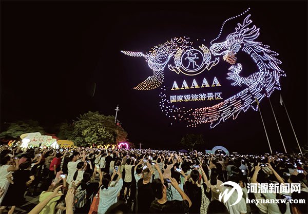 東源縣利用無人機等低空飛行器,融合該縣客家文化、綠美生態(tài)等元素,打造無人機編隊表演等文旅消費新場景。今年7月“萬綠湖文旅周”期間,萬綠湖景區(qū)舉辦“萬里挑一·星河入湖”無人機表演活動,以11198架無人機的成功表演,創(chuàng)吉尼斯“最多無人機同時飛行”的世界紀(jì)錄,吸引游客18.68萬人次到萬綠湖景區(qū)觀看、旅游,帶動旅游收入超2390萬元。