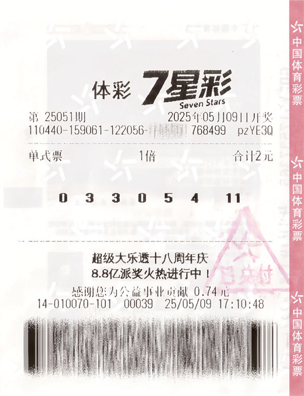 據了解,中獎者王先生(化姓)是一位購彩10年的90后購彩者。今年5月初,他在龍川縣一體彩實體店(編號4414010070)用50元購買頂呱刮即開票,中得30元獎金,隨后,他用30元獎金的28元購買大樂透套票,剩余的2元隨手機選了一注7星彩。正是這看似隨意的“零錢購彩”,竟意外命中5月9日開獎的7星彩第25051期一等獎。