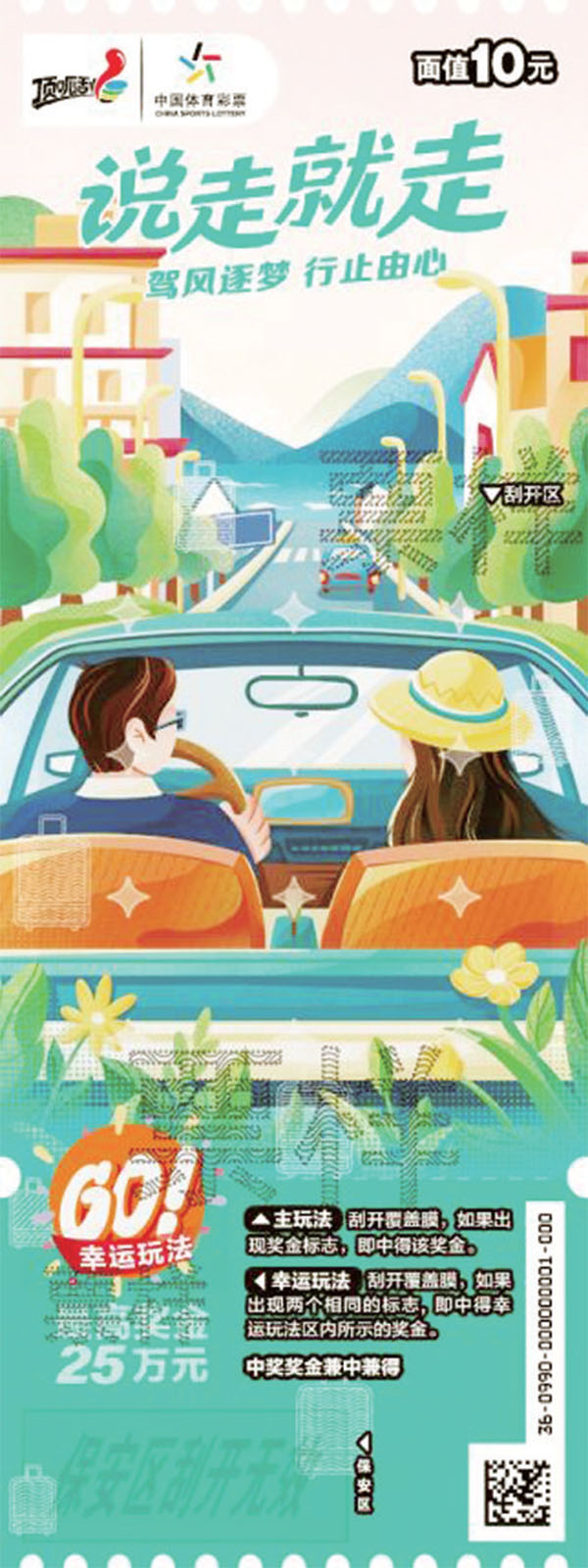 據(jù)了解,“說走就走Ⅲ”面值10元,共有7個(gè)票面場(chǎng)景,13次中獎(jiǎng)機(jī)會(huì)。游戲玩法分為“主玩法+幸運(yùn)玩法”,帶你感受雙重幸運(yùn)。其中,主玩法為:刮開覆蓋膜,如果出現(xiàn)獎(jiǎng)金標(biāo)志,即中得該獎(jiǎng)金;幸運(yùn)玩法為:刮開覆蓋膜,如果出現(xiàn)兩個(gè)相同的標(biāo)志,即中得幸運(yùn)玩法區(qū)內(nèi)所示的獎(jiǎng)金。中獎(jiǎng)獎(jiǎng)金兼中兼得。