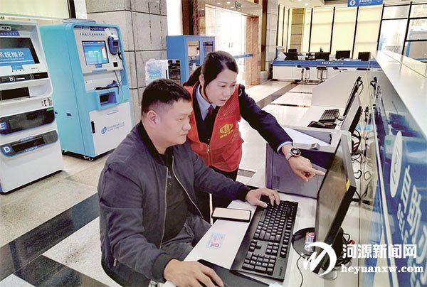 源城區稅務局志愿者在辦稅服務廳指導納稅人辦理業務。