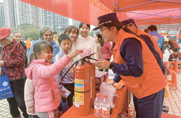工作人員為市民講解消防器材使用方法。