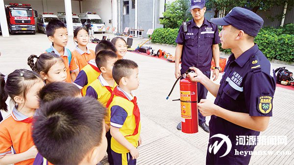 高科技消防設(shè)備吸引了學(xué)生們的目光。